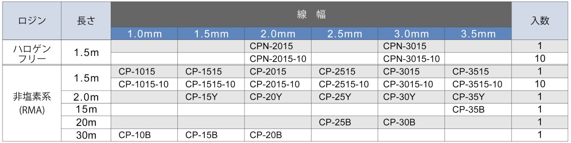 他、CP-□□15シリーズ(長さ 約1.5mの吸取線シリーズ)