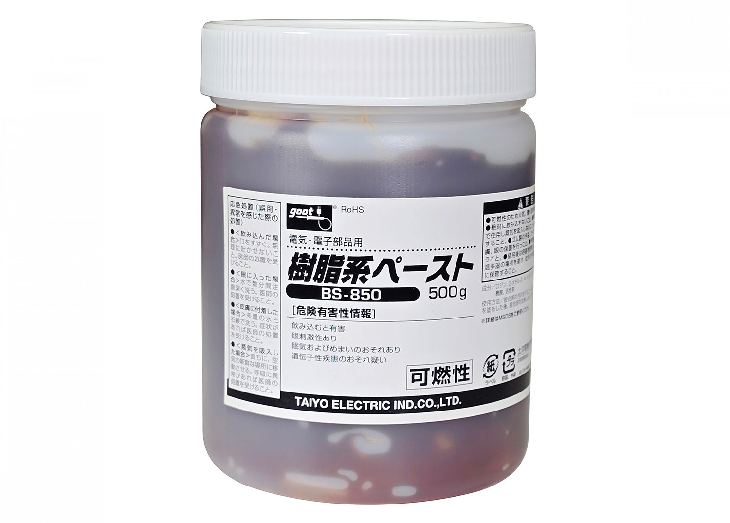 プリント基板上のリード線や電子部品のはんだ付けに使用できるペーストタイプのはんだ付け促進剤です。