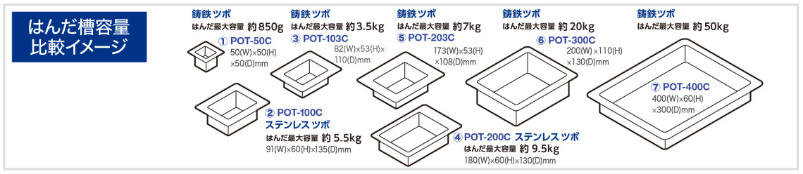 はんだ槽のサイズ比較