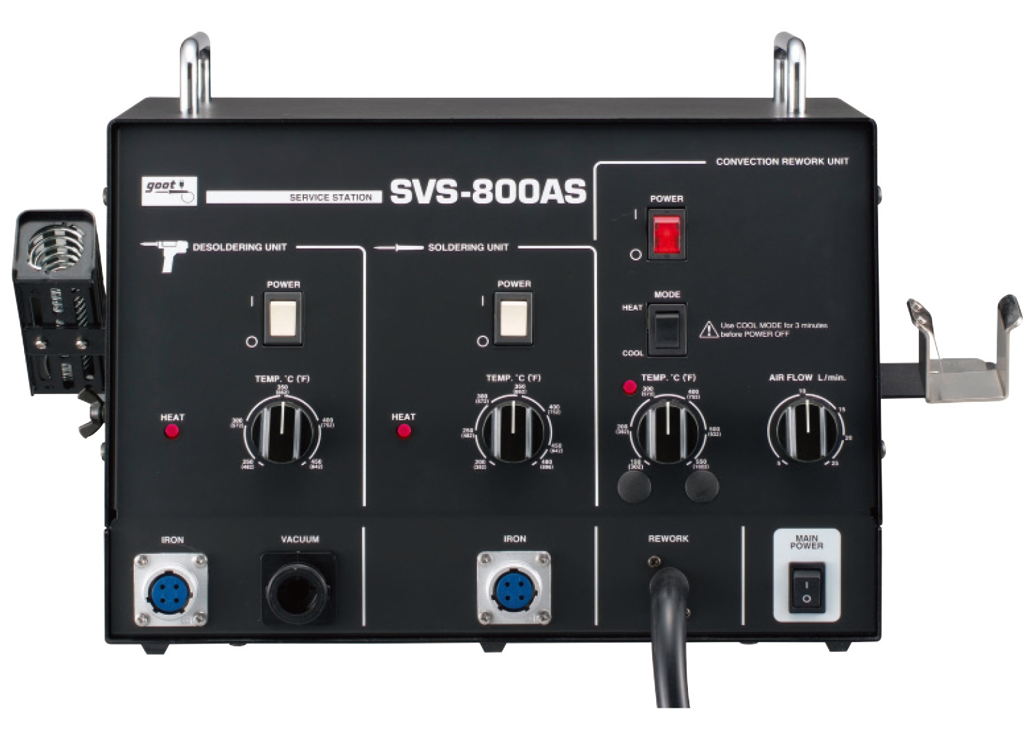 はんだこて、はんだ吸取器、熱風式リワーク器を一体化したオールマイティな複合器
