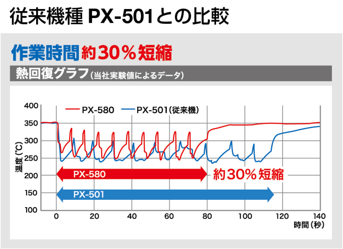 従来機種PX-501に比べて作業時間約30%短縮を実現しました(当社比)