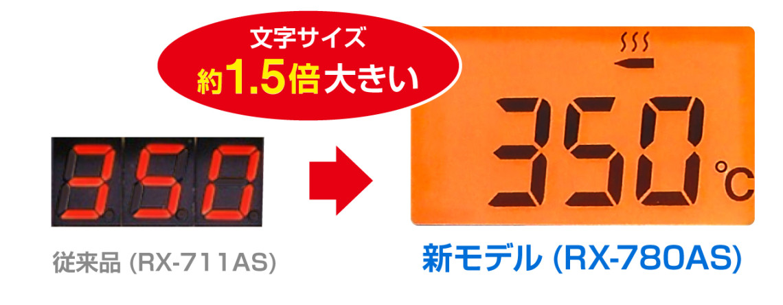 ・作業時のこて先温度降下が小さいので、作業時間の大幅短縮が可能となります。