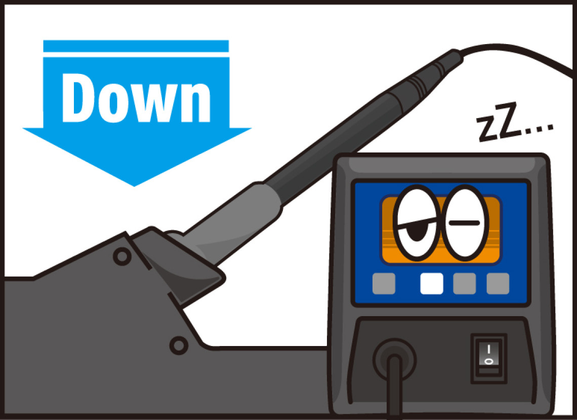 ・スリープ機能/シャットダウン機能により、こて先の空焼きによる劣化やコンセントの抜き忘れによるトラブルを予防します。