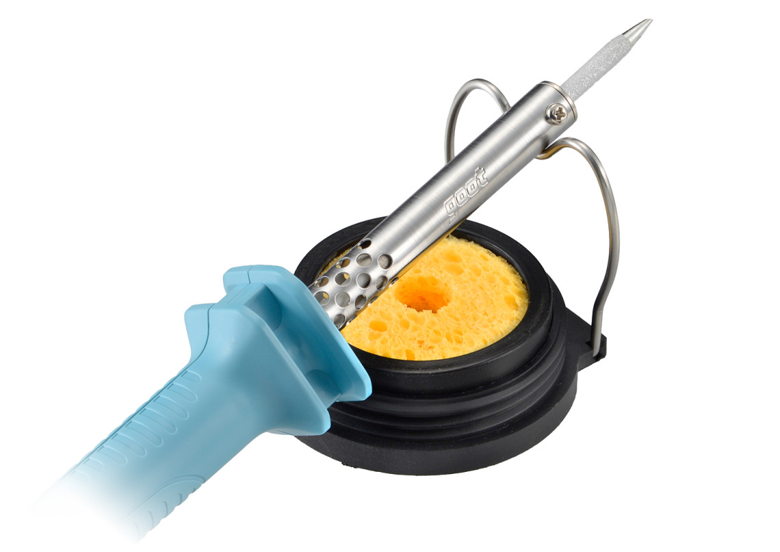 フタ付きこて先クリーナーで、作業時の濡れたスポンジでも工具箱に入れて簡単に持ち運びできます。