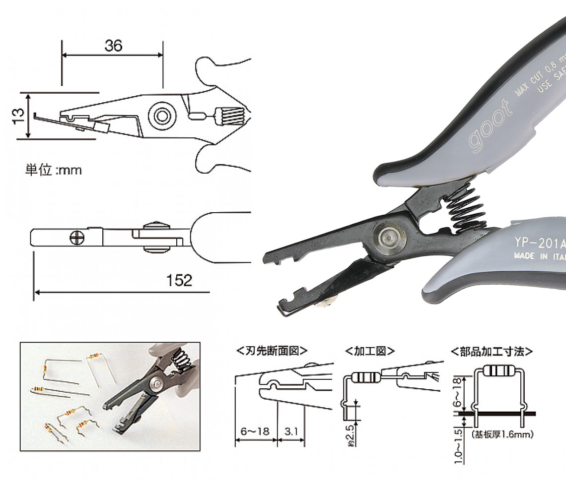 (注)銅線以外の切断には使用しないでください。 切断の仕方により、長さが若干変化します。