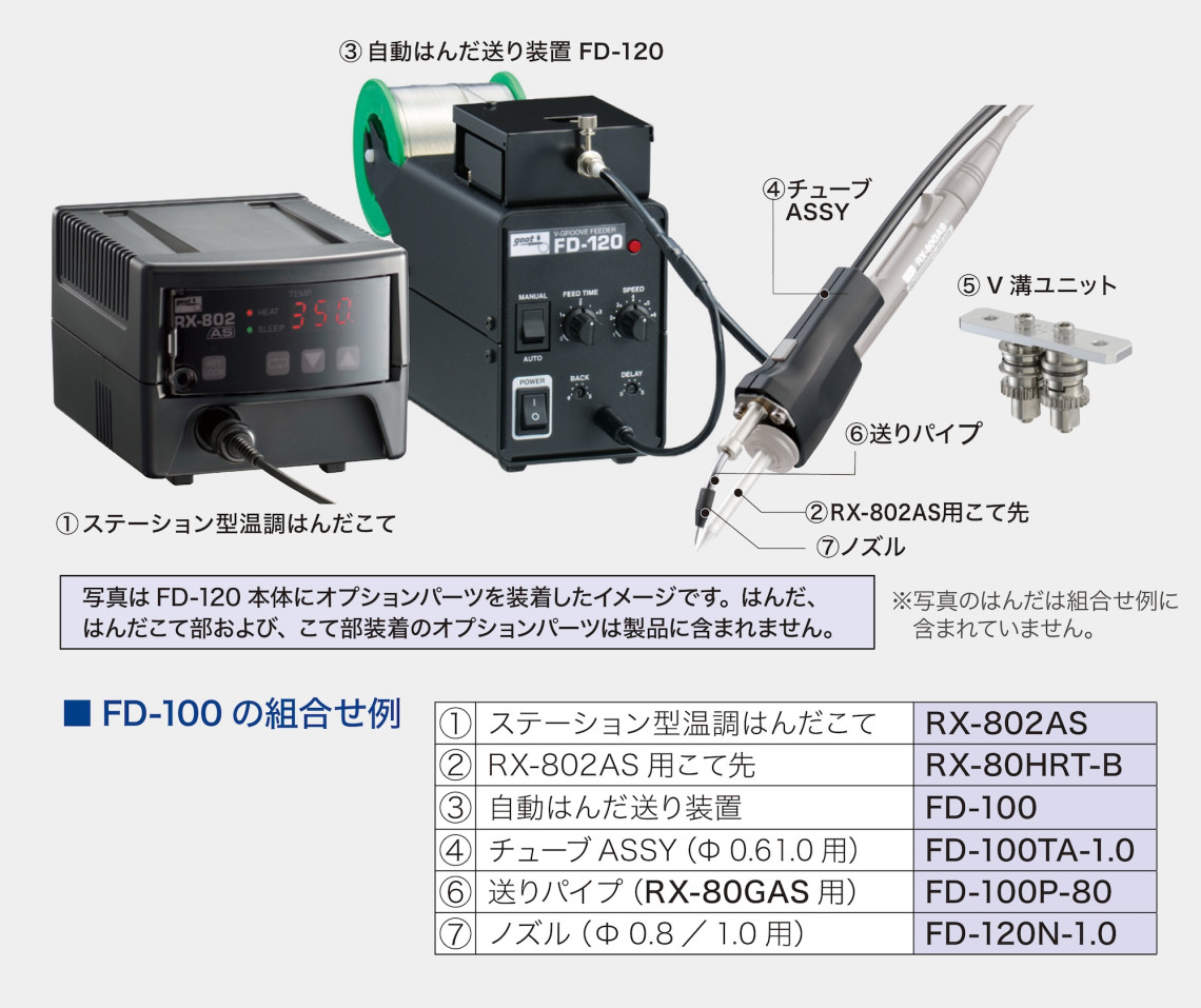 写真はFD-120本体にオプショパーツを装着したイメージです。はんだ、こて部および、こて部装着のオプションパーツは製品に含まれません。