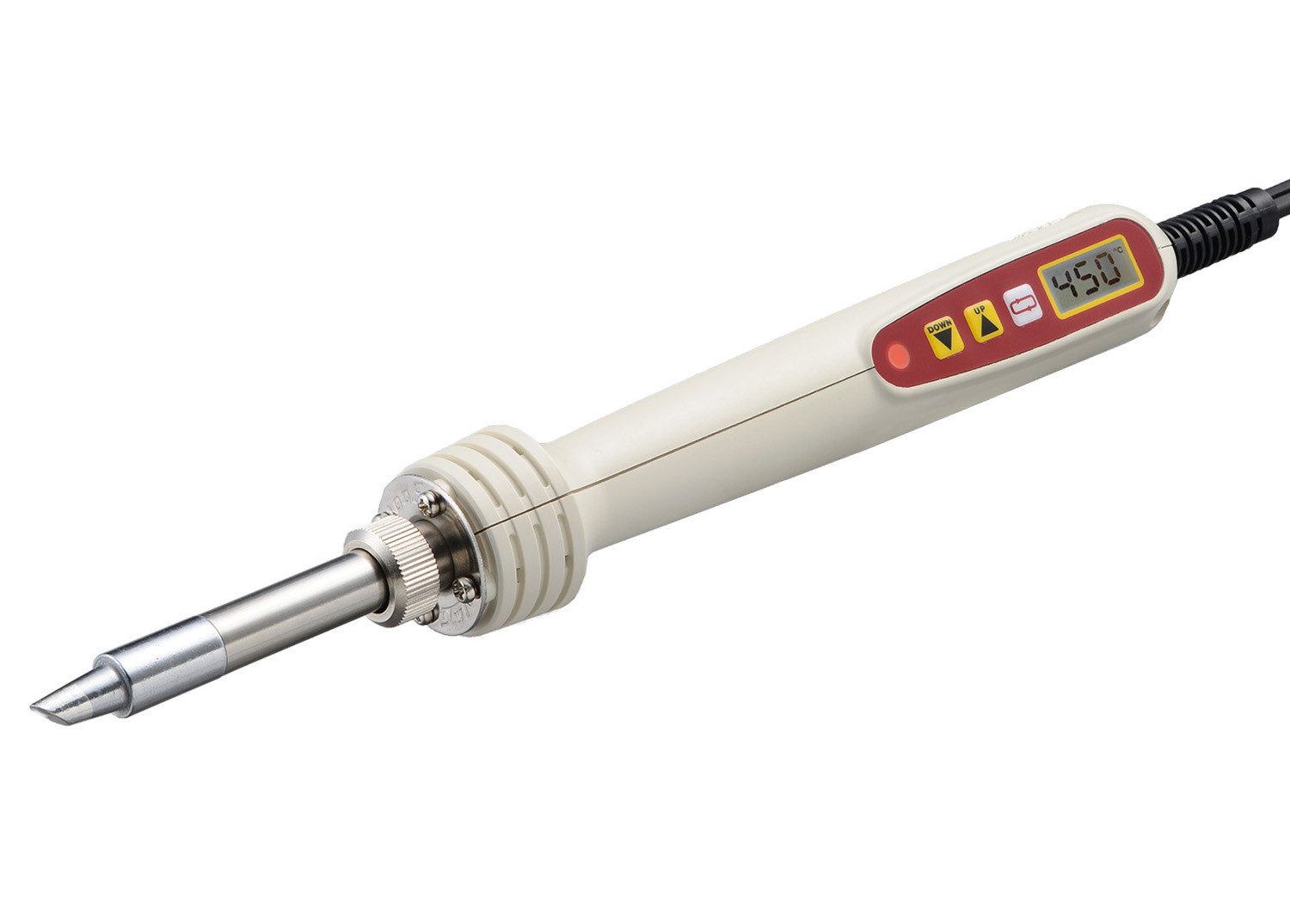 はんだこてに搭載されたデジタル表示で設定温度を一目で確認。