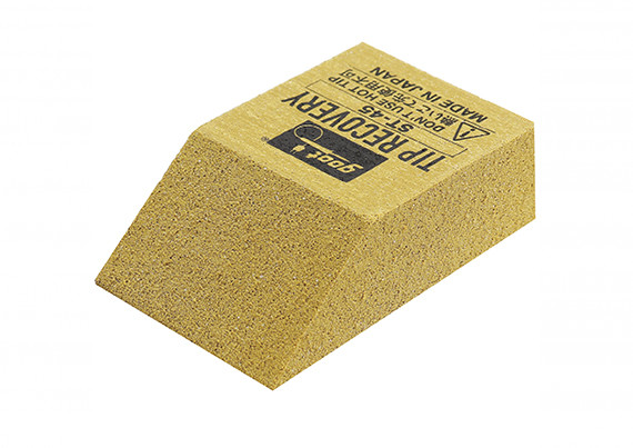 2. こて先を本品に当て軽く擦って酸化物を取ってください。強く擦りすぎるとこて先が破損したり、素地まで削られてしまいます。