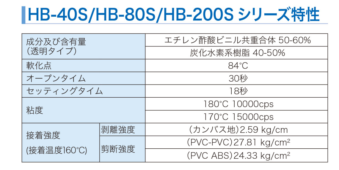 記載データは測定値であり、保証値ではありません。ホットボンドは接着後熱を加えると溶解します。